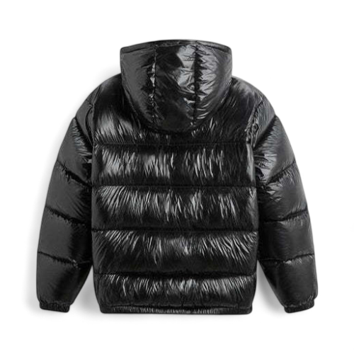 Een lichtgewicht unisex pufferjas met een moderne, losse pasvorm en subtiele matte afwerking.
